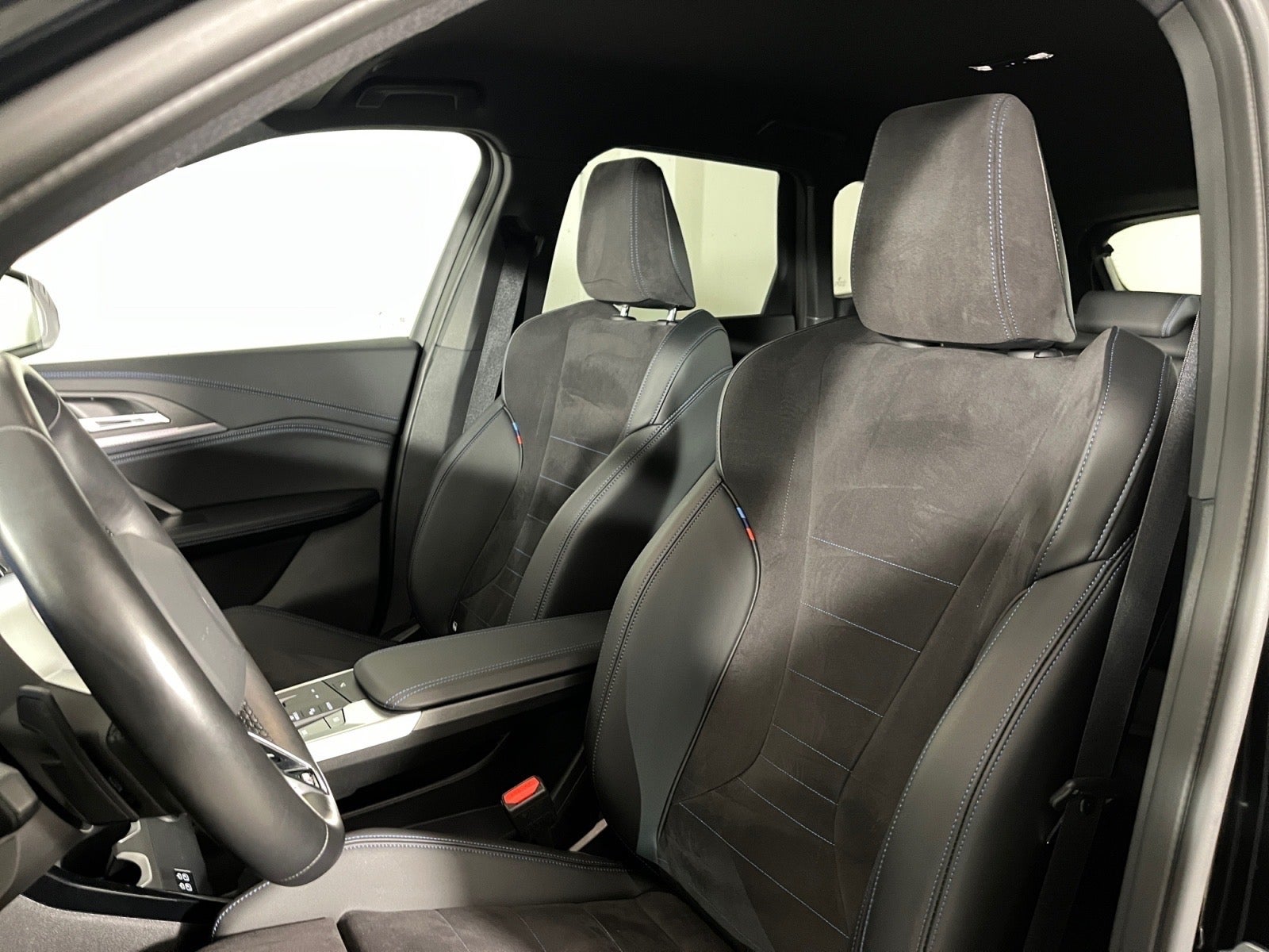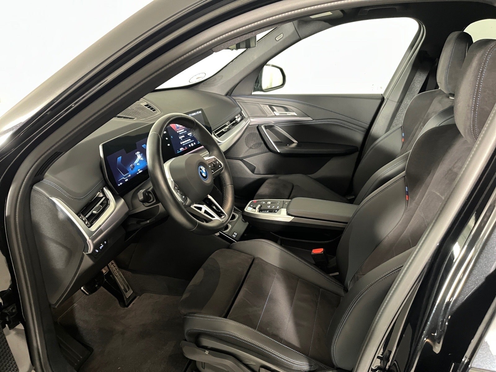 Blacksapphire-metallic, M Alcantara/Veganza kombination | sort med blå kontrastsyninger, Premium pakke, M-sportssæder, M-multifunktionssportslæderrat, trådløs mobilopladning, projektionslys under sidespejle, sædevarme for, interiørliste aluminium Hexacube, instrumentpanel Luxury ambientebelysning, trådløs Apple CarPlay og Android Auto, parkeringssensor for og bag, aut. nedblændende bak- og venstre sidespejl, el‐klapbare sidespejle med varme, antracit himmel, akustisk- og aktiv fodgængerbeskyttelse, widescreen display, BMW IconicSounds Electric, DAB+ radio, sport boost, dæktryksovervågning, Active Guard, 2-zonet klimaautomatik og forklimatisering, teleservice, Connected Drive Services, 4x el-ruder, el-spejle, bluetooth, ISOFIX, m.m.