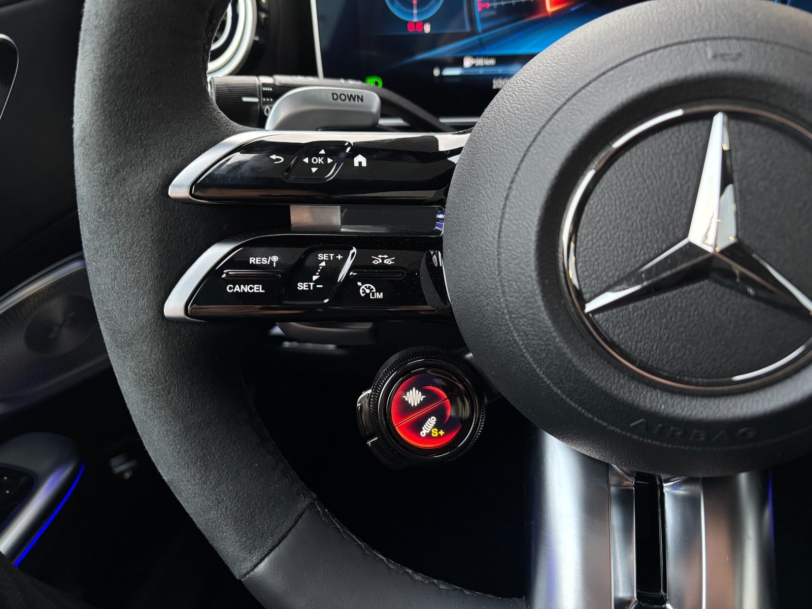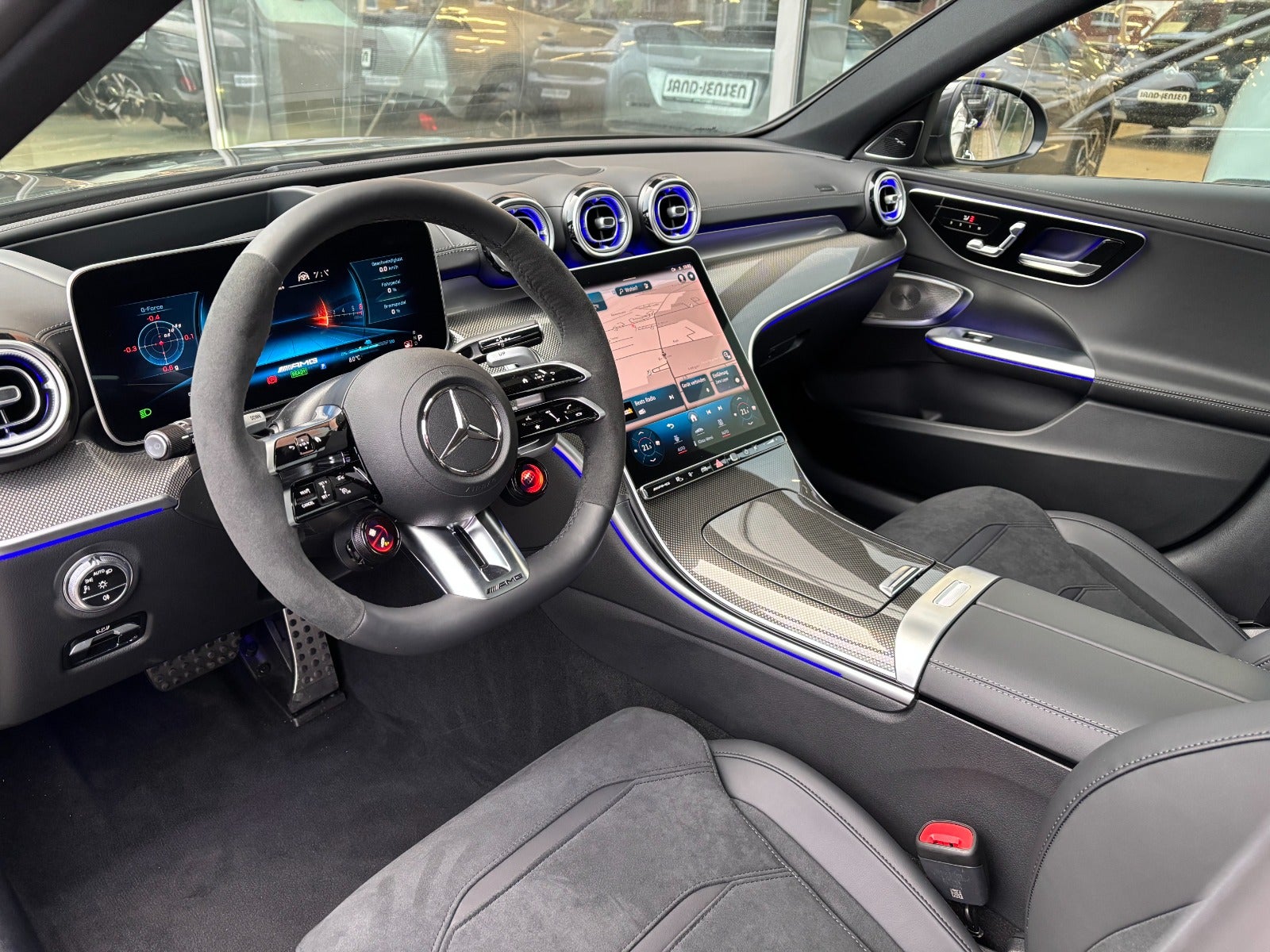 4-zoners klimaanlæg, AMG Performance-rat i læder/Alcantara, forsæder elektrisk justerbare med memory, sædevarme foran, I-Size-mærkning, memory-pakke, elektrisk ratstamme, elektrisk lændestøtte foran, ambientebelysning Premium Plus, instrumentpanel og kant i læder, dekorindlæg i metaleffekt, spejlpakke, indvendige og udvendige spejle automatisk nedblændelige, udvendige spejle elektrisk justerbare, opvarmede og sammenklappelige, Live Traffic, Augmented Reality-video, Mercedes-Benz Connect MBUX Entertainment Plus, Mercedes Me, lydpersonalisering, smartphone-integrationspakke – Apple CarPlay & Android Auto, MBUX interiørassistent, induktiv ladeplade, USB-pakke Entry, dashcam, afstandsreguleret fartpilot Plus (DISTRONIC PLUS), DISTRONIC PLUS med tværstøtte (DTR+Q), automatisk hastighedsregulering, aktiv vognbaneassistent, aktiv blindvinkelassistent, aktiv vognbaneskifteassistent, rutebaseret hastighedstilpasning, udvidet genstart i stop-and-go trafik, aktiv styreassistent, PRE-SAFE® Impuls Side, 360° surround-view kamera, aktiv parkeringsassistent, Attention Assist, lyskryds-visning, eCall-nødkaldssystem, bagakselstyring, AMG Drive Unit, projektionsfunktion via forlygter, logo-projektion via spejle, Digital Light LED-forlygter, automatisk fjernlys Plus (IHC+), AMG-førerpakke, AMG Track Pace, aktive motorophæng, AMG-styling, fingeraftryk-scanner, regnsensor, sort loftsbeklædning, tonede ruder bagtil, TIREFIT, tyveripakke Plus, AMG Performance interiør & eksteriør, oplyst indstigningspanel med udskifteligt cover, rødmalede bremsekalibre, AMG-afslutningskant, AMG Driver’s Package m.m.