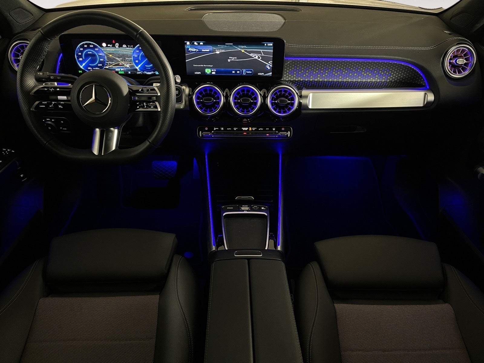Kosmossortmetal, sort ARTICO dellæder, 19" AMG alufælge i multiegers design, komfortundervogn, memory i ratstamme og spejle, smartphone integrationspakke inkl. Apple CarPlay og Android Auto, baggrundsbelyste pynteelementer i stjerne design, trådløs mobilopladning, ambientebelysning i 64 farver, widescreen display med 2x 10.25" skærme, aktiv vognbaneassistent, blindvinkelsassistent, færdselstavleassistent, MBUX navigation Premium, sædevarme for, el-lændestøtte, multifunktionssportsrat med varme, 2-zonet klimaautomatik, multimediesystem, parkeringssensor for og bag, udstigningsadvarsel, akustisk miljøbeskyttelse, skubbare bagsæder, el-bagklap, parkeringspakke high, keyless go pakke, spejlpakke, køreassistentpakke, sædekomfortpakke, lys-og synspakke, dæktryksmåler, sort himmel, kopholder, bluetooth, el-parkeringsbremse, træthedsregistrering, USB-C tilslutning, lys- og regnsensor, aut. nedbl. bakspejl, Mercedes-Benz nødopkaldssystem, DAB-radio, kommunikationsmodul LTE til Mercedes me connect, 12V stikdåse, m.m.