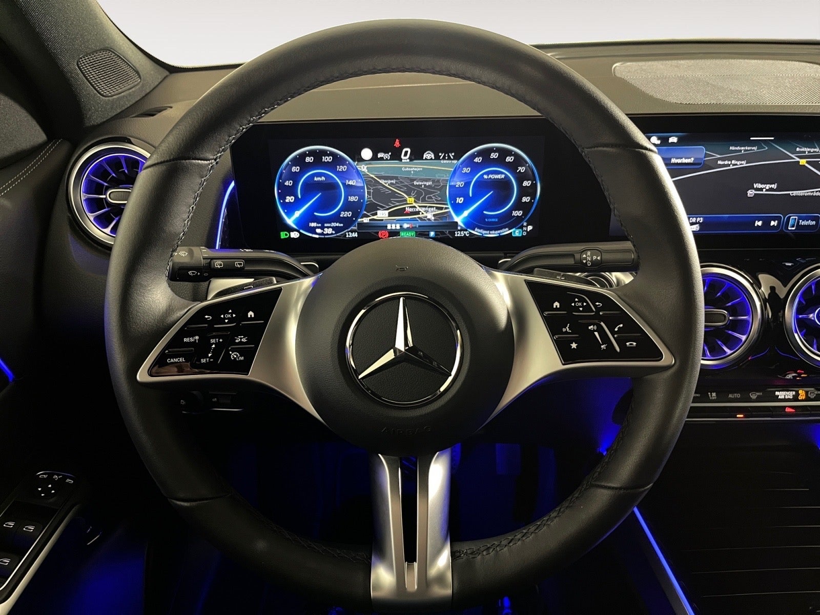 Polarhvid, sort ARTICO dellæder, ambientebelysning i 64-farver, aktiv vognbaneassistent, skubbare bagsæde, forklimatisering via timer og Mercedes-Me App, sædevarme for, MBUX navigation og MBUX multimediesystem, parkeringssensor for og bag, udstigningsadvarsel, aktiv bremseassistent, multifunktionssportsrat med varme, sort taghimmel, DAB-radio, akustisk miljøbeskyttelse, sædekomfortpakke, lys- og synspakke, tagræling i kromoptik, baggrundsbelyste pynteelementer i stjernedesign, oplyste indstigningslister, 4-vejs lændestøtte, spejlpakke, strækningsbaseret hastighedstilpasning, dæktryksmåler, el-bagklap, kopholder, bluetooth, el-parkeringsbremse, træthedsregistrering, Remote & Charging Services Premium, USB-C tilslutning, lys- og regnsensor, aut. nedbl. bakspejl, Mercedes-Benz nødopkaldssystem, kommunikationsmodul LTE til Mercedes me connect, m.m.